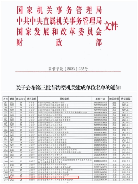 近日,国家机关事务管理局、中共中央直属机关事务管理局、国家发展和改革委员会、财政部公布第三批节约型机关建成名单,永仁县红十字会位列其中,荣获国家级“节约型机关”殊荣。