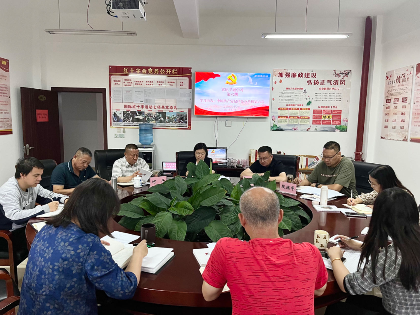 讲授纪律党课。围绕学习《中国共产党纪律处分条例》,党组书记、机关党支部书记紧扣党的政治纪律、组织纪律、廉洁纪律、群众纪律、工作纪律、生活纪律,以《学党纪党规 做合格党员 为红十字事业高质量发展提供坚强纪律保障》为题,为全体党员讲授了一堂专题纪律党课,推动党纪学习教育入脑入心,把遵规守纪刻印在心,内化为日用而不觉的言行准则。