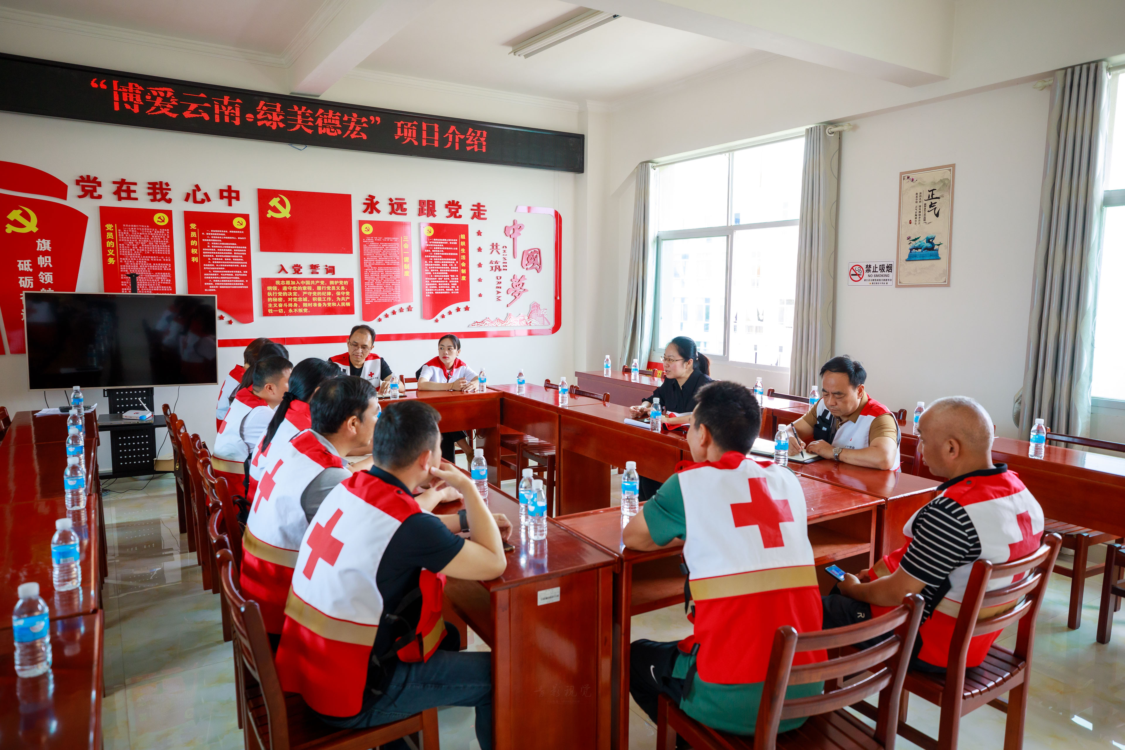 芒市红十字会、瑞丽市红十字会、陇川县红十字会、梁河县红十字会及盈江县红十字会理事单位的领导、红十字志愿者代表等60余人参加活动。