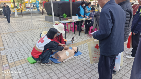 三月是学雷锋志愿月,3月5日,大姚县红十字会党支部组织全体党员,到县城永盛菜市场门口广场开展主题党日活动,把实用急救技能送到群众身边。