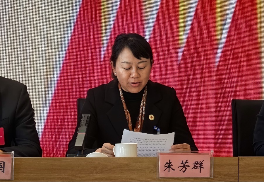 新当选的红十字会会长朱芳群同志作表态发言