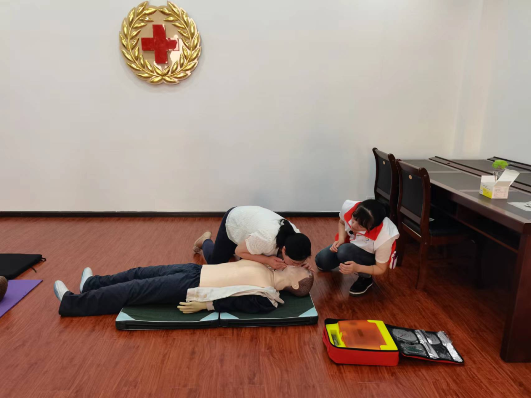 理论课堂强素质。以看展板、听讲解、实操作等方式,带领参训人员了解红十字知识及家庭用电、防踩踏、泥石流等常见安全问题,并学习掌握地震避险动作、自救结绳、心肺复苏、AED等基本应急技能。
