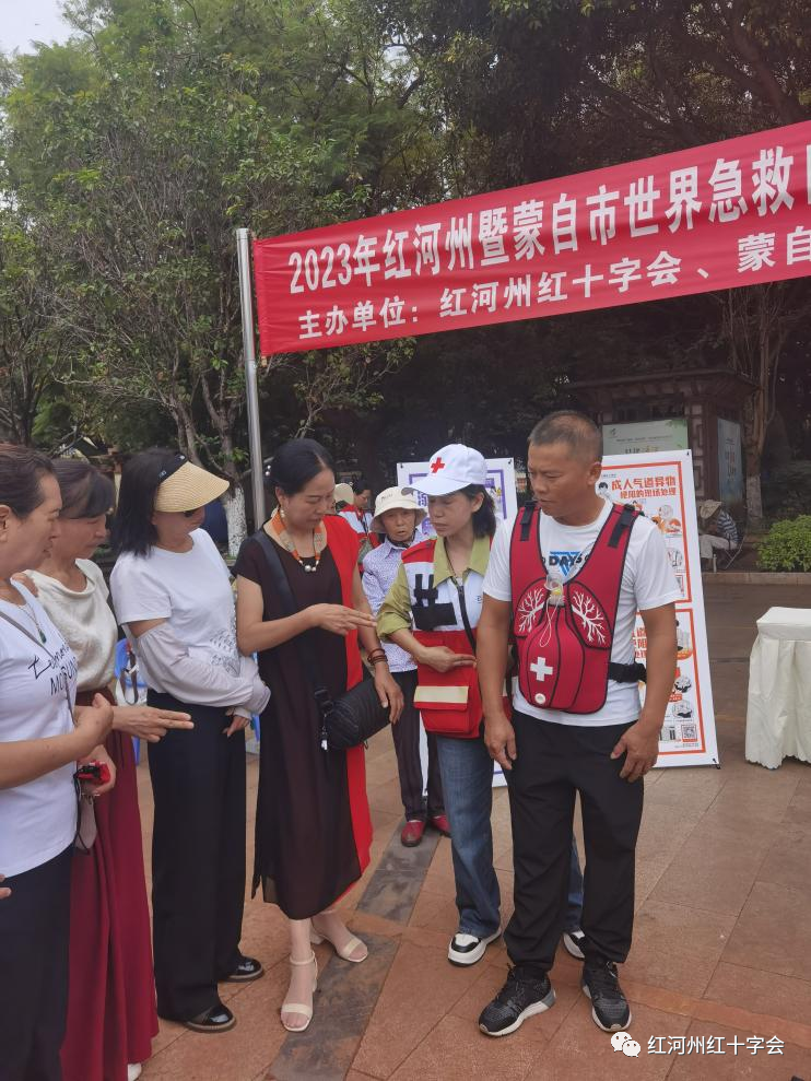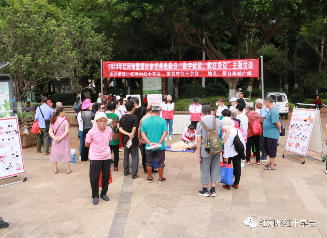 为纪念即将到来的第24个“世界急救日”,提升广大群众应急救护能力,做好应急救护知识普及宣传工作。9月5日上午,红河州红十字会、蒙自市红十字会在南湖广场开展“数字赋能,救在身边”世界急救日主题宣传活动。