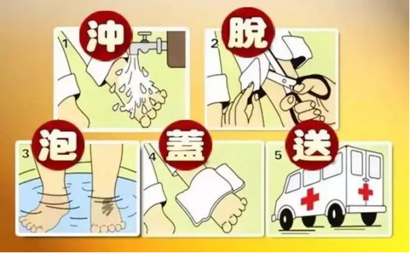 1.冲:立即用流动冷水冲洗15-30分钟(避开冰块直接敷)。