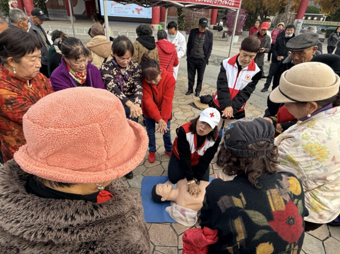 开设“急救地摊”,把急救护培训课堂开在群众身边。志愿者讲师以通俗语言开讲,结合老年人常见的跌倒、心脑血管突发、气道异物梗阻等风险场景,重点拆解心肺复苏(CPR)“黄金四分钟”原则、海姆立克急救法操作口诀,以及跌倒后的自我保护与应急处理技巧。针对老年学员记忆特点,讲师特意将按压深度“5-6厘米”转化为“成人拳头高度”,用“包剪锤”的口诀简化海姆立克操作步骤。老人们纷纷为红十字会的便民服务点赞,让他们真正学到了实用技能。