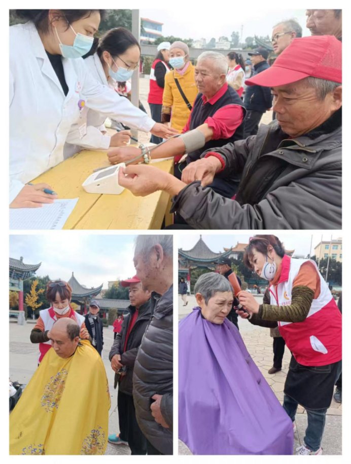 12月5日,在第40个国际志愿者日到来之际,宜良县红十字会坚持以党建促红建,围绕“汇聚志愿力量 共建美好社会”主题,聚焦“三救三献”主责主业,联合宜良蓝天中风针灸专科医院、精艺美发在县文化广场发开展了一系列暖心志愿服务活动,生动诠释了“奉献、友爱、互助、进步”的志愿精神和“人道、博爱、奉献”的红十字精神。