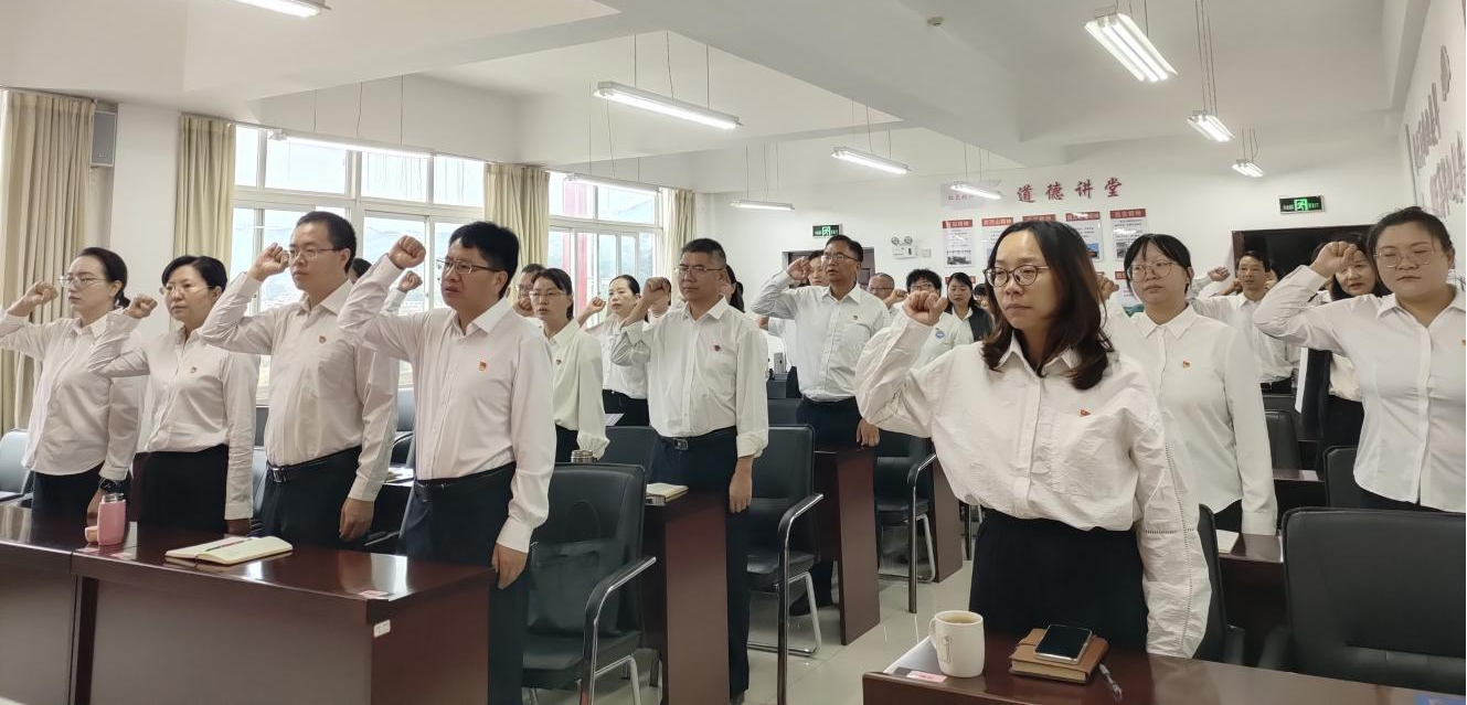 重温入党誓词,重忆入党初心。在党旗下,全体党员肃立,在党总支书记的带领下紧握右拳,坚定且有力地念出入党誓词。通过重温入党誓词,时刻提醒每一名党员干部,勿忘曾经在党旗下的誓言,勿忘作为一名共产党员的初心与使命,坚定理想信念,弘扬和继承党的优良传统和作风,用无愧于共产党员称号的实际行动积极投身到为实现中华民族伟大复兴的中国梦的伟大事业中。