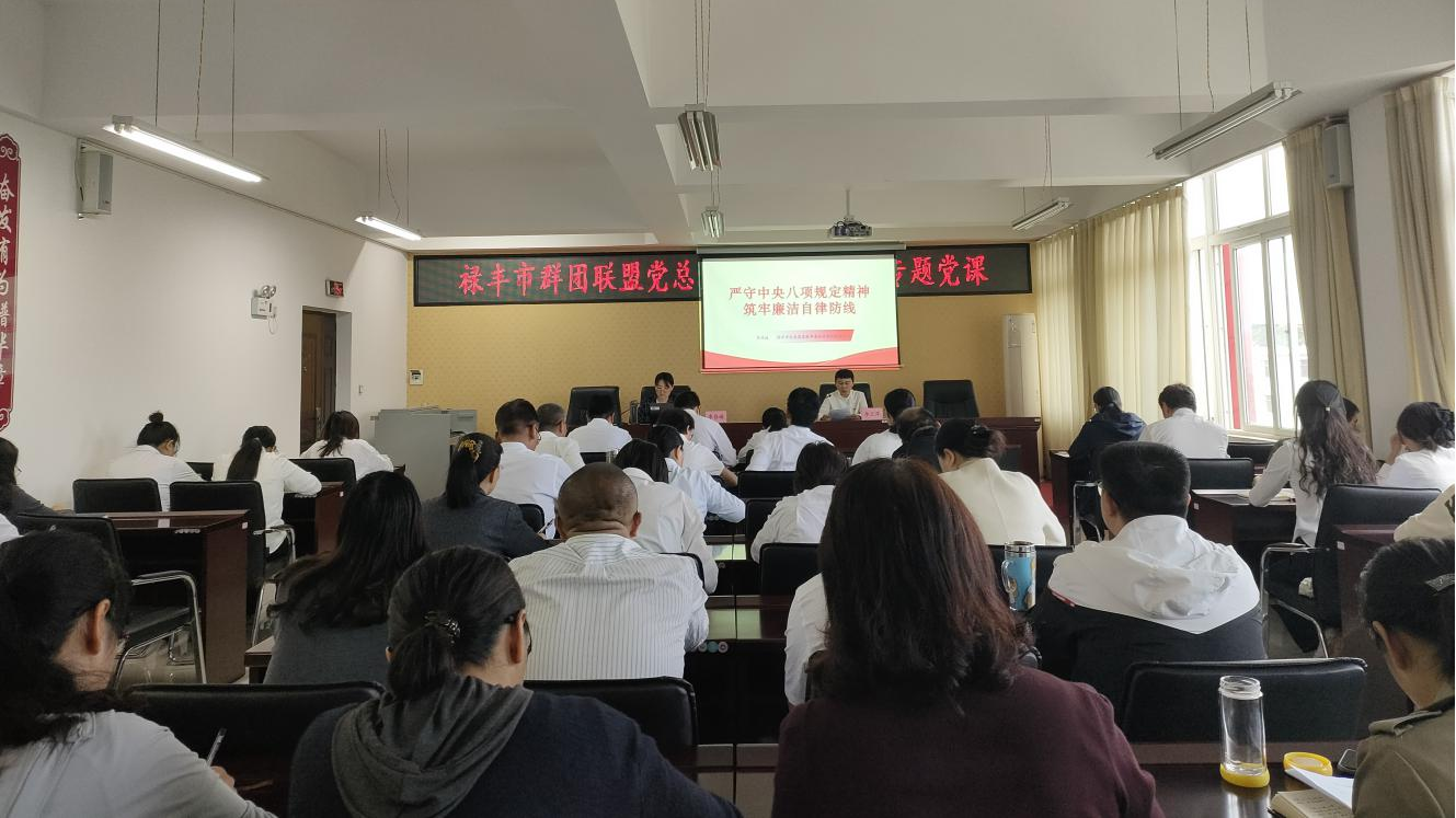 为进一步提高禄丰市群团联盟全体党员、干部爱国主义情怀,增强廉洁自律意识,筑牢拒腐防变思想防线,10月17日,禄丰市群团联盟党总支组织开展“深化廉洁教育 筑牢思想防线”主题党日活动,市群团联盟8家单位全体党员、干部职工参加活动。主题党日活动通过重温入党誓词、讲授党纪辅导课、现场警示教育和爱国主义教育等形式,使群团联盟全体党员、干部职工思想上受到了一次深刻的精神洗礼和党性淬炼,为坚定决心、增强信心,依规依纪依法履职尽责奠定坚实基础。