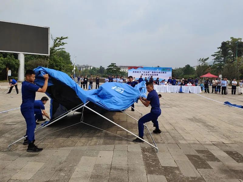 本次技能竞赛采取个人赛和团体赛形式,设置防灾减灾知识科普宣讲、应急安全知识抢答、应急救灾帐篷搭建3个竞赛项目。
