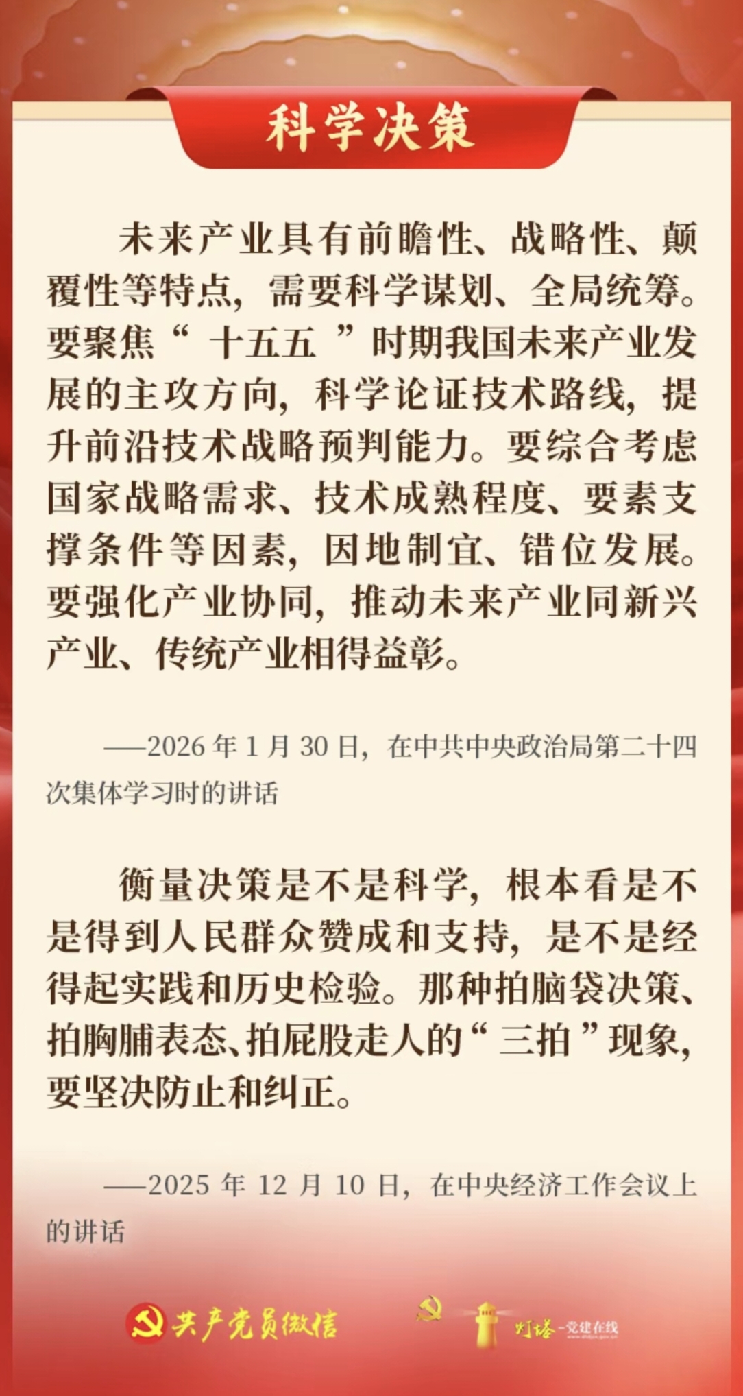 中共中央办公厅印发《关于在全党开展树立和践行正确政绩观学习教育的通知》,明确把“立党为公、为民造福、科学决策、真抓实干”这16个字,作为学习教育的总要求。“十五五”开局之年,一起学习总书记相关重要论述,将16字总要求内化于心、外化于行,树立和践行正确政绩观,投身强国建设、民族复兴的关键一程。