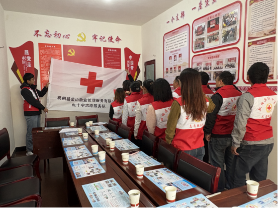 10月24日,双柏县金山物业管理服务有限公司红十字志愿服务队成立,双柏县红十字会负责人为志愿服务队授予队旗,标志着社区志愿服务体系再添红十字力量。