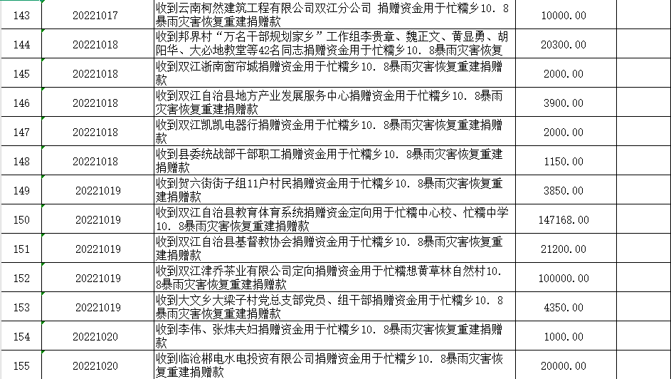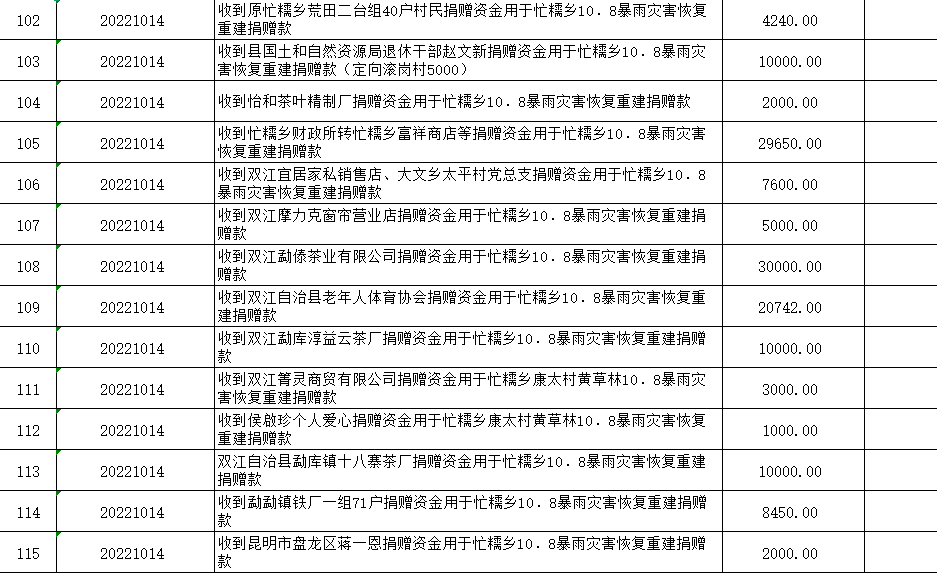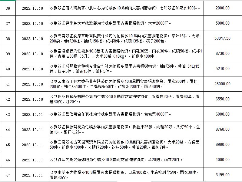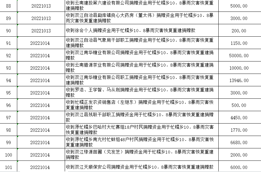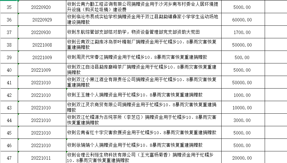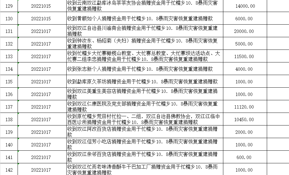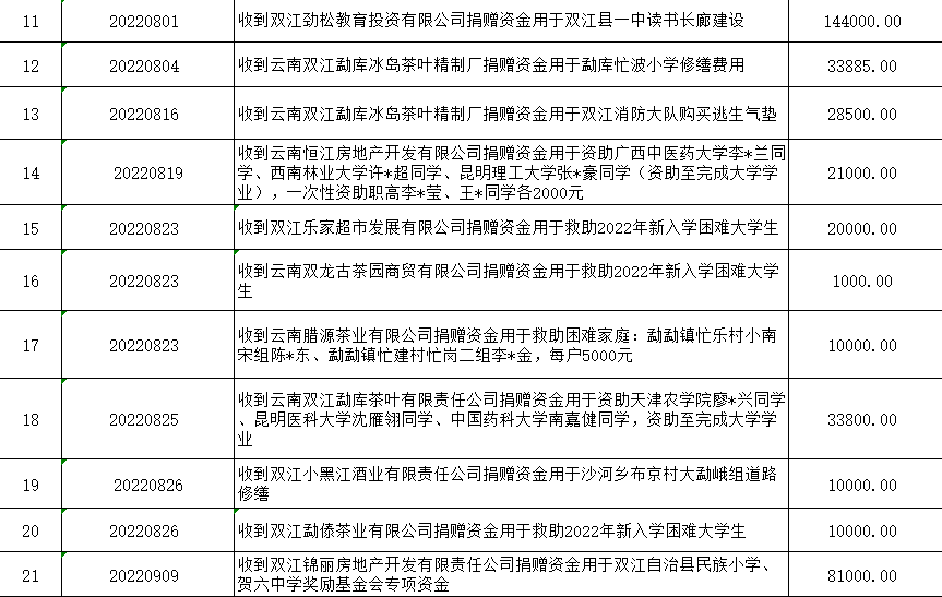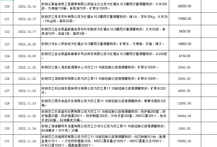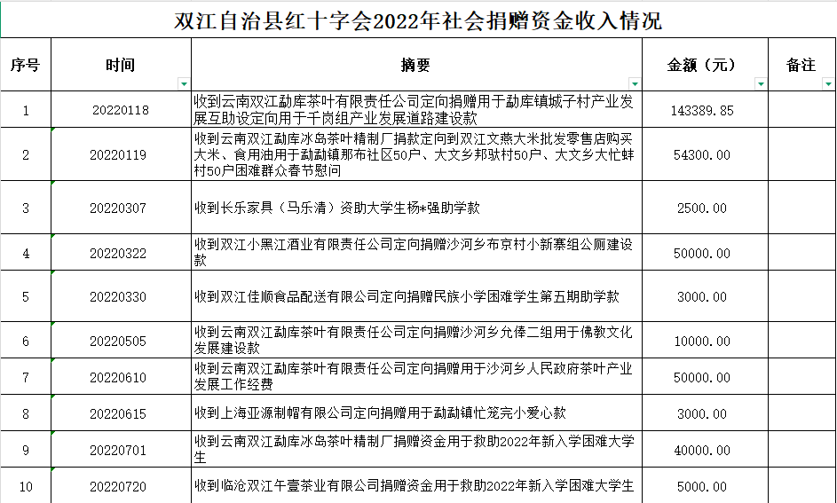 双江自治县红十字会是党领导下的群团组织,是从事人道主义工作的社会救助团体,是党和政府在人道领域的助手和联系群众的桥梁纽带,开展社会募捐和救助是《中华人民共和国红十字会法》赋予的法定职责。现将双江自治县红十字会2022年社会捐赠资金、物资接收和使用情况公示如下: