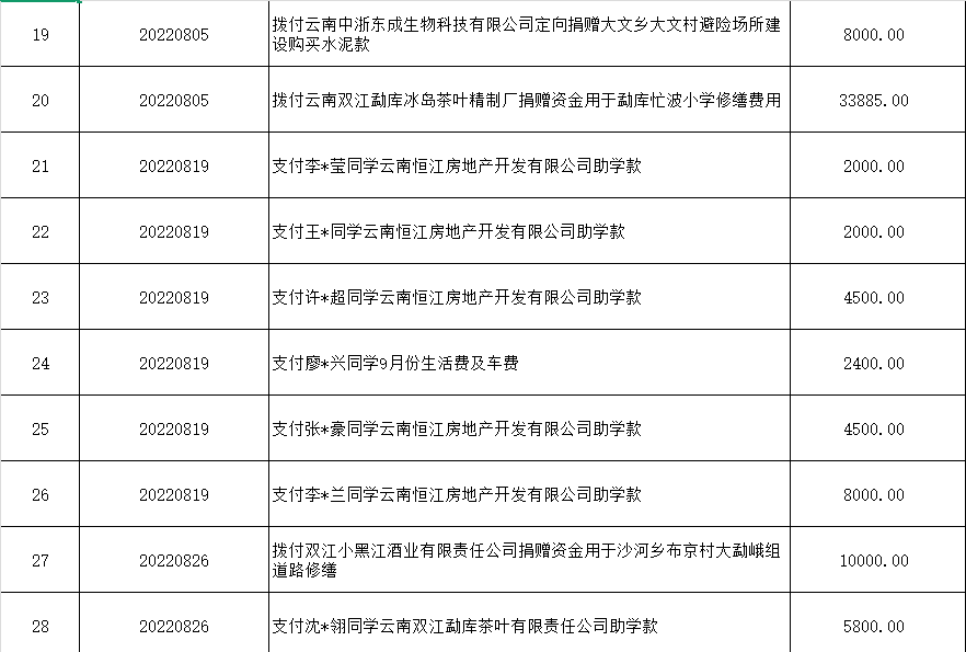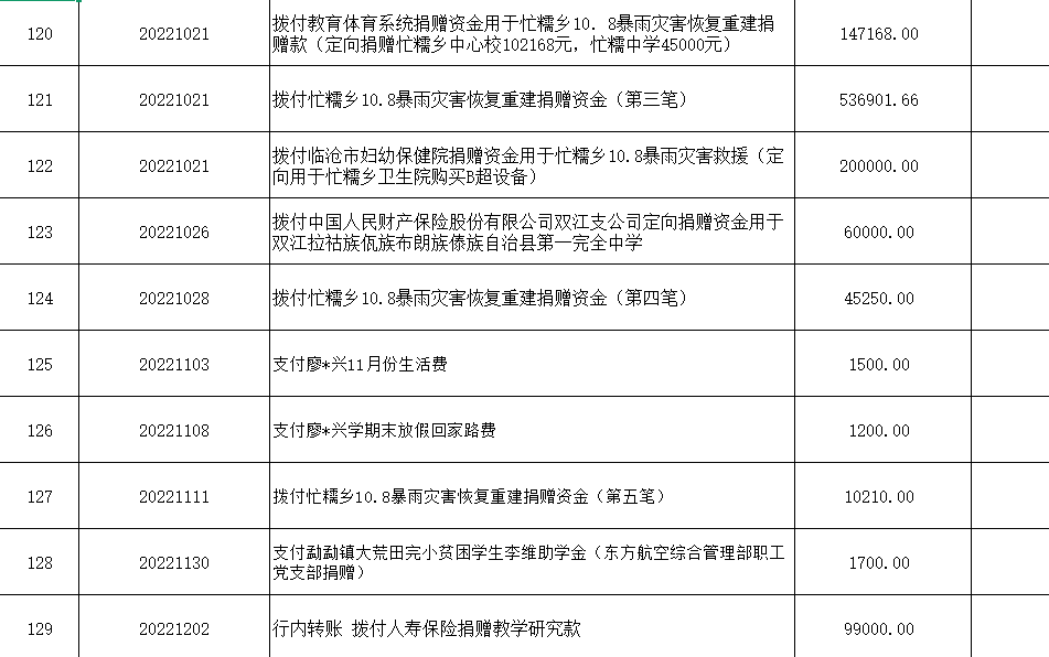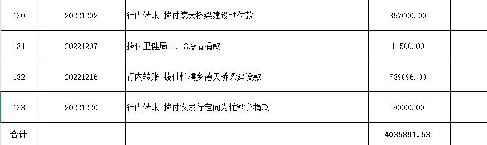 (二)捐赠资金支出情况:支出金额合计4035891.53元(大写:肆佰零叁万伍仟捌佰玖拾壹元伍角叁分)。(具体明细见下表)