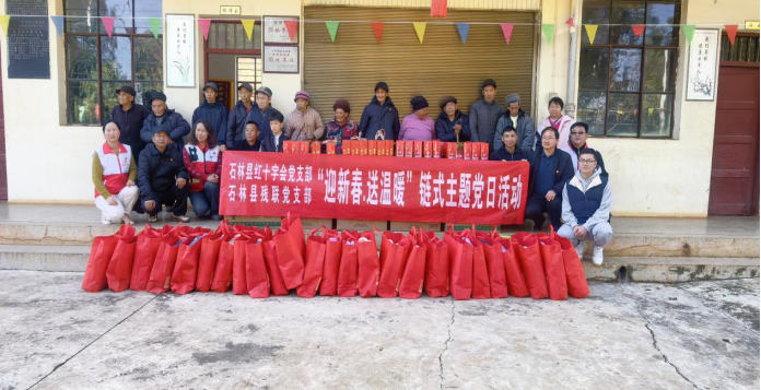 党徽熠熠凝朝气,党日融融映瑞年。2026年1月29日上午,在石林县峻枫足浴中心、石林县老裁缝家纺、石林县壹加壹商贸有限公司的支持下,石林县红十字会党支部、石林县残联党支部携手开展“迎新春、送温暖”链式主题党日活动,推动企业“大爱”在各个角落传递,一股“暖流”温暖每一颗“困境”的心灵,从而让这个冬天的“一米阳光”变得更加明媚、更加灿烂。