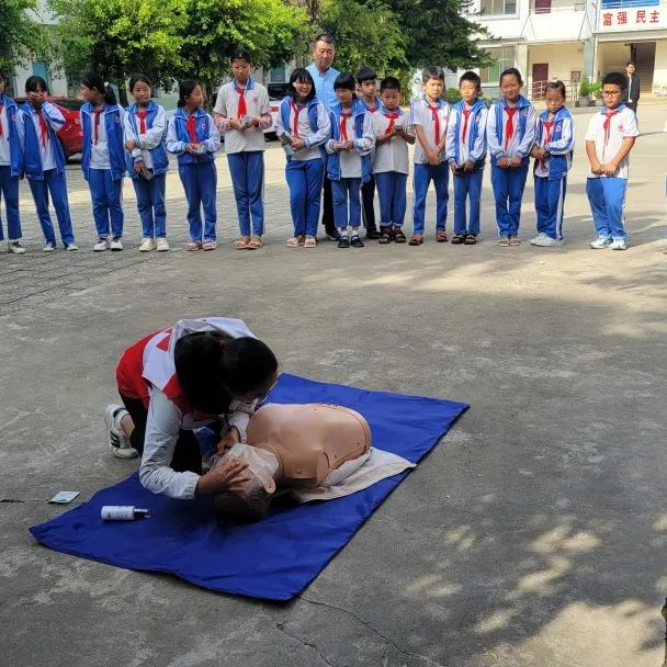 红十字应急救护培训讲师采取理论与实操相结合的方式,借助模拟人,生动演示胸外按压、开放气道、人工呼吸等心肺复苏各个环节的操作步骤和要点,让师生们了解心肺复苏、海姆立克急救法等救护知识与技能。