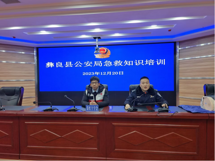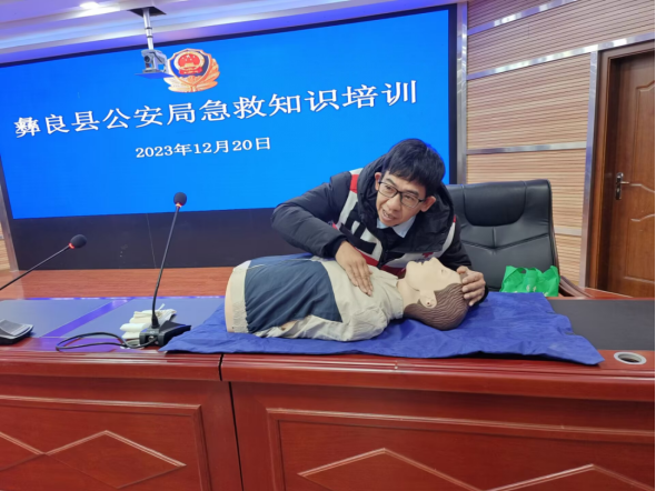 2023年12月20日,彝良县红十字会应急救护培训老师为县公安局公安民警开展应急救护知识讲解与实际操作。公安民警作为社会治安秩序维护者,在工作过程中难免会遇到紧急突发情况,掌握应急救护的操作方法十分必要。