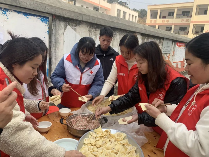 三是包饺子,志愿者们个个化身厨艺能手,放馅、捏皮一气呵成,一个个大小匀称、形状美观的饺子装满盘子。不一会儿,热气腾腾的饺子出锅上桌,大家吃着饺子,心里乐开了花,幸福洋溢在每一个人的脸庞。