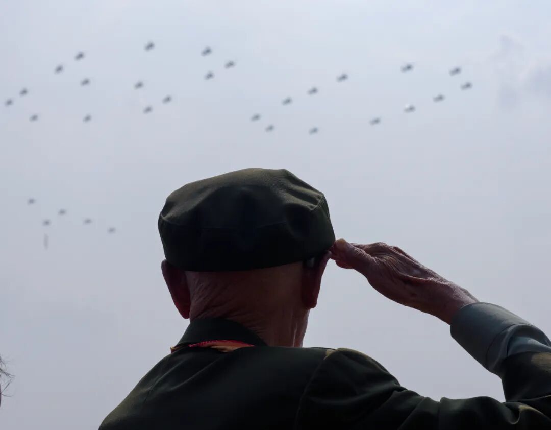 这是市民在卢沟桥观看运输机梯队。新华社记者 宋彦桦 摄