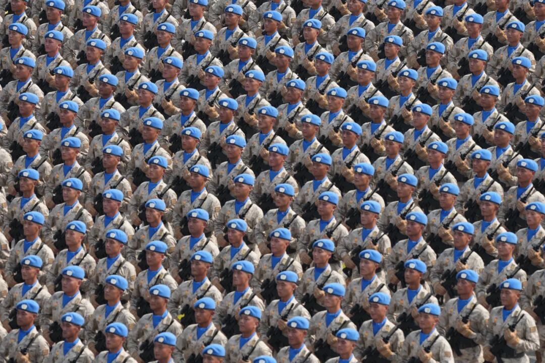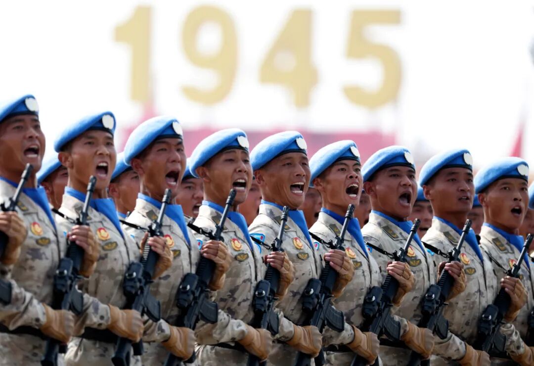 这是维和部队方队接受检阅。新华社记者 孙非 摄