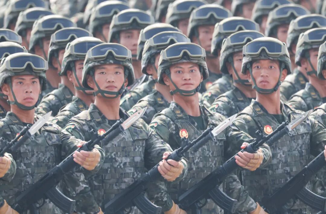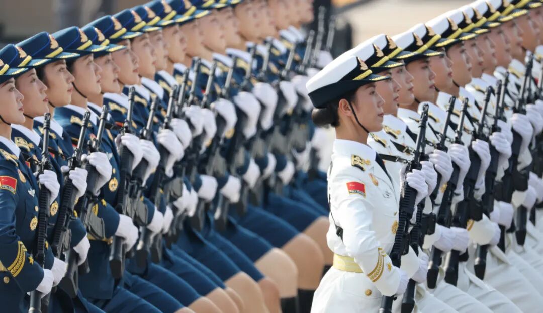 这是中国人民解放军仪仗方队接受检阅。新华社记者 刘续 摄