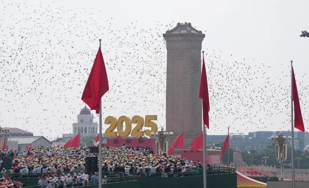 这是纪念大会现场放飞鸽子。新华社记者 张宏祥 摄