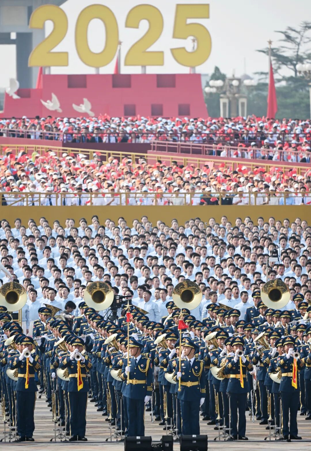 这是纪念大会开始前,中国人民解放军联合军乐团在演奏。新华社记者 胡虎虎 摄