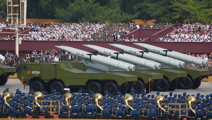 受阅的“惊雷-1”空基远程导弹、“巨浪-3”潜射洲际导弹、“东风-61”陆基洲际导弹、“东风-31”新型陆基洲际导弹,首次集中展示我军陆、海、空基“三位一体”战略核力量,是维护国家主权、捍卫民族尊严的战略“王牌”。