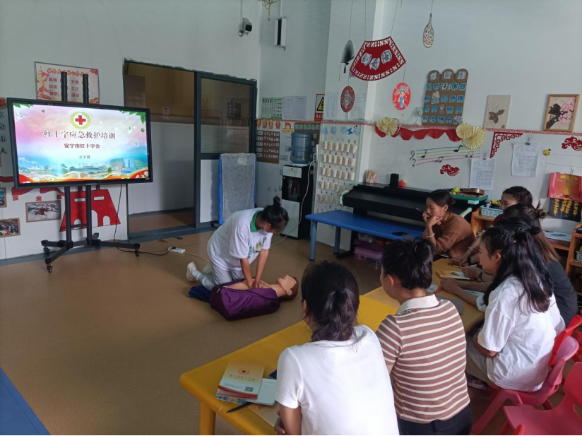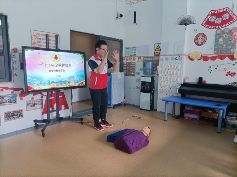 草铺街道红十字分会进入金麒麟幼儿园开展应急救护普及性培训