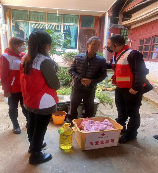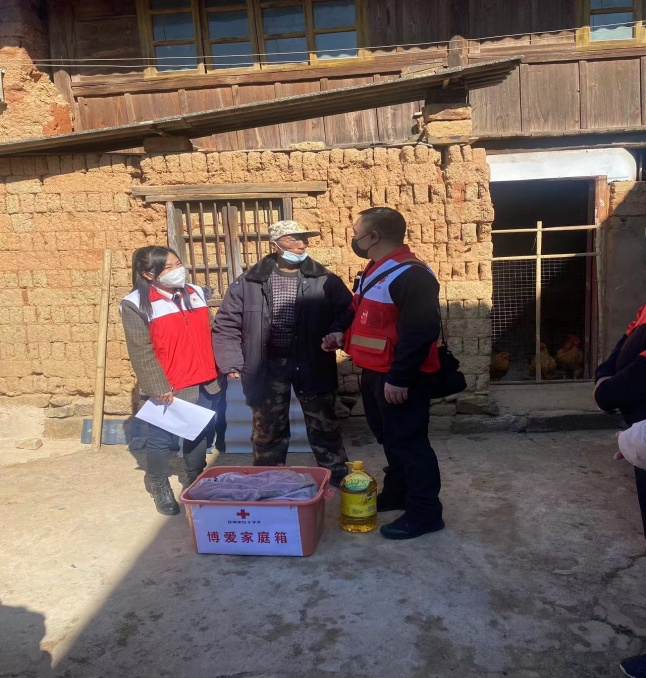 为大力弘扬“人道、博爱、奉献”的红十字精神,把党和政府社会爱心人士对困境群众的帮助和关爱,切实送到群众中去,让他们度过一个温暖幸福的春节。1月9日上午,昆明市红十字会、安宁市红十字会下基层慰问,八街街道副主任浦夙夔陪同深入八街街道招霸村委会,对乡村振兴定点帮扶人员进行博爱送万家入户赠与春节慰问品。