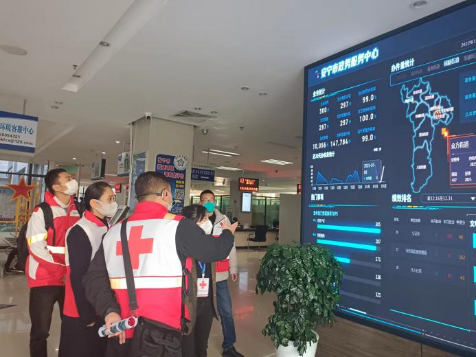 下午,调研组参观了安宁市特殊教育学校和安宁市政务服务大厅,详细了解“安宁市红十字会特殊教育博爱学校”示范点建设情况、AED智能联网外箱,以及红十字工作进政务服务大厅情况。