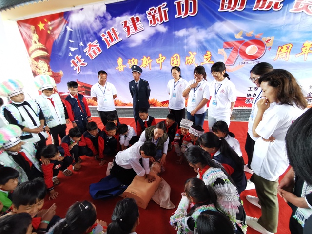 5月31日上午,州红十字会、州总工会、州计生协会和红河爱尔眼科医院到金平县老集寨乡大棚竹村小学,联合开展“共奋进建新功 喜迎新中国成立70周年”主题宣传活动。