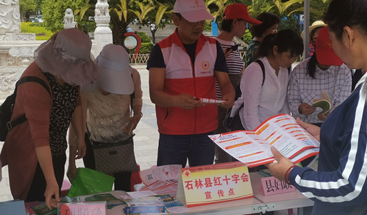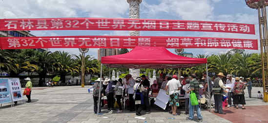 6月4日下午,石林县红十字会组织红十字志愿者参加第32个“世界无烟日”集中宣传活动。