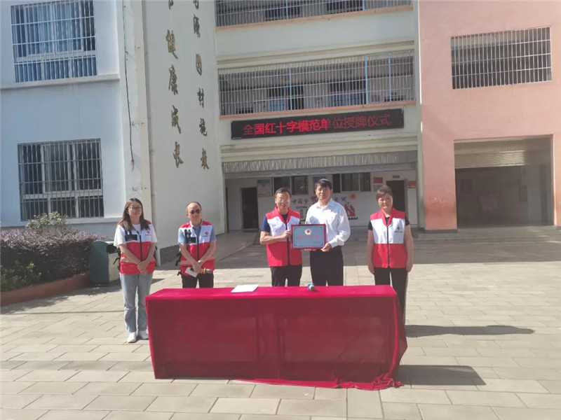 仪式上,滕洪宣读了《中国红十字会总会关于表彰全国红十字模范单位的决定》(中红字〔2021〕3号),对金山小学作为省内三家受表彰学校之一、州内唯一受表彰学校,获得“全国红十字模范单位”称号表示了祝贺。并代表州市红十字会给金山小学颁发了“全国红十字模范单位”奖牌,鼓励全体师生珍惜荣誉,积极进取,再接再厉,充分发挥模范带头作用,为推动红十字事业高质量发展再立新功、再创佳绩。