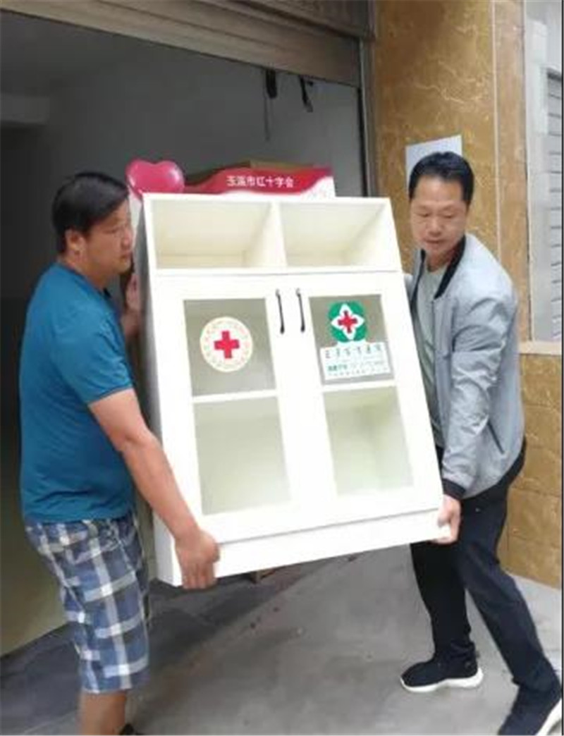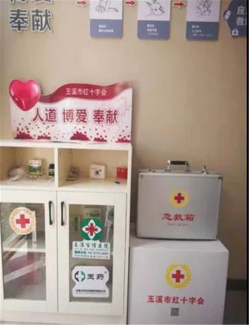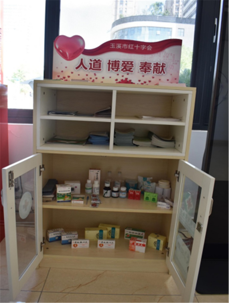 2019年,玉溪市红十字会通过动员爱心企业,在全市试点设立了60个社区红十字服务站,为每个服务站配备了一个红十字服务柜,在服务柜摆放血压计、体温表、绷带、胶布、棉签、夹板、创可贴、碘伏、风油精、清凉油、正骨水、盐水、葡萄糖、保济丸、急救包、急救知识读本等,为社区居民和到党群服务中心办事的群众在遇到紧急情况时提供免费的应急救护服务,红十字服务柜的推出不但增加了街道、社区的服务供给,还丰富了街道、社区党群服务中心的服务内容,受到了群众的欢迎和好评。