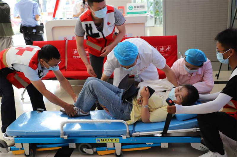 此次演练,红十字应急救援队主要是对被暴徒伤害的伤员进行止血、包扎、情绪安抚等现场急救措施和人道关怀,并协助120的医务人员进行转运伤员,争取在最短时间内控制伤员的伤势,避免伤情加重,为专业医疗机构成功救治伤员创造条件。