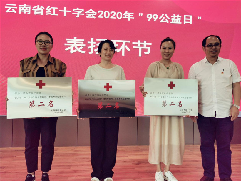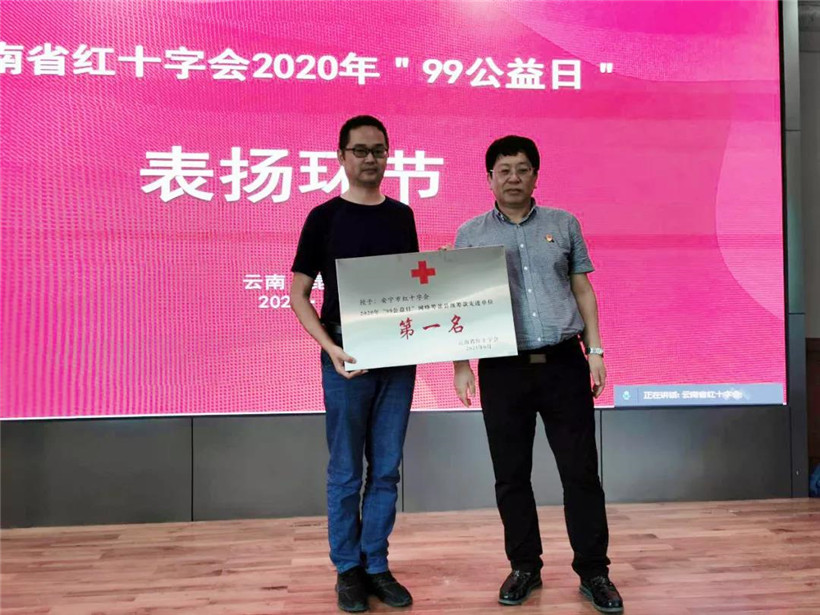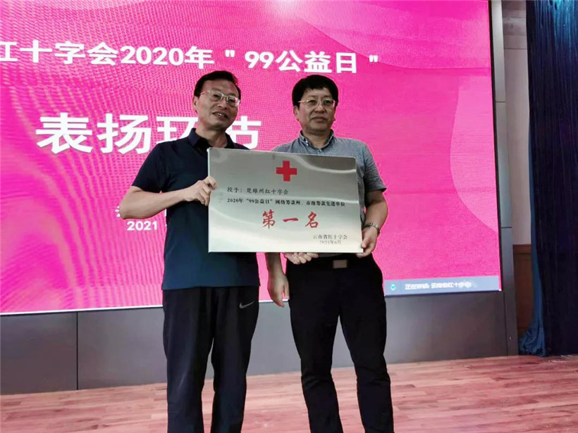 会上,对2020年”99公益日“工作完成较好的楚雄州、保山市、红河州、昭通市、德宏州、大理州等进行了通报表扬,梁先平为受表扬单位颁发奖牌。