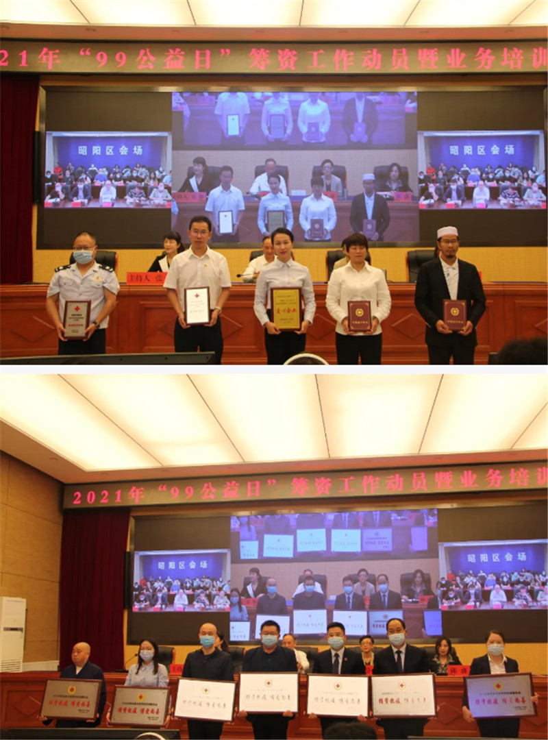 会上颁发了中国红十字会授予:市高速公路投资发展有限责任公司、市伊斯兰教协会的“中国红十字会奉献奖章”;颁发云南省红十字会授予:市烟草公司的99公益“爱心企业”奖牌,市教育体育局、市税务局的99公益“优秀组织单位奖牌。
