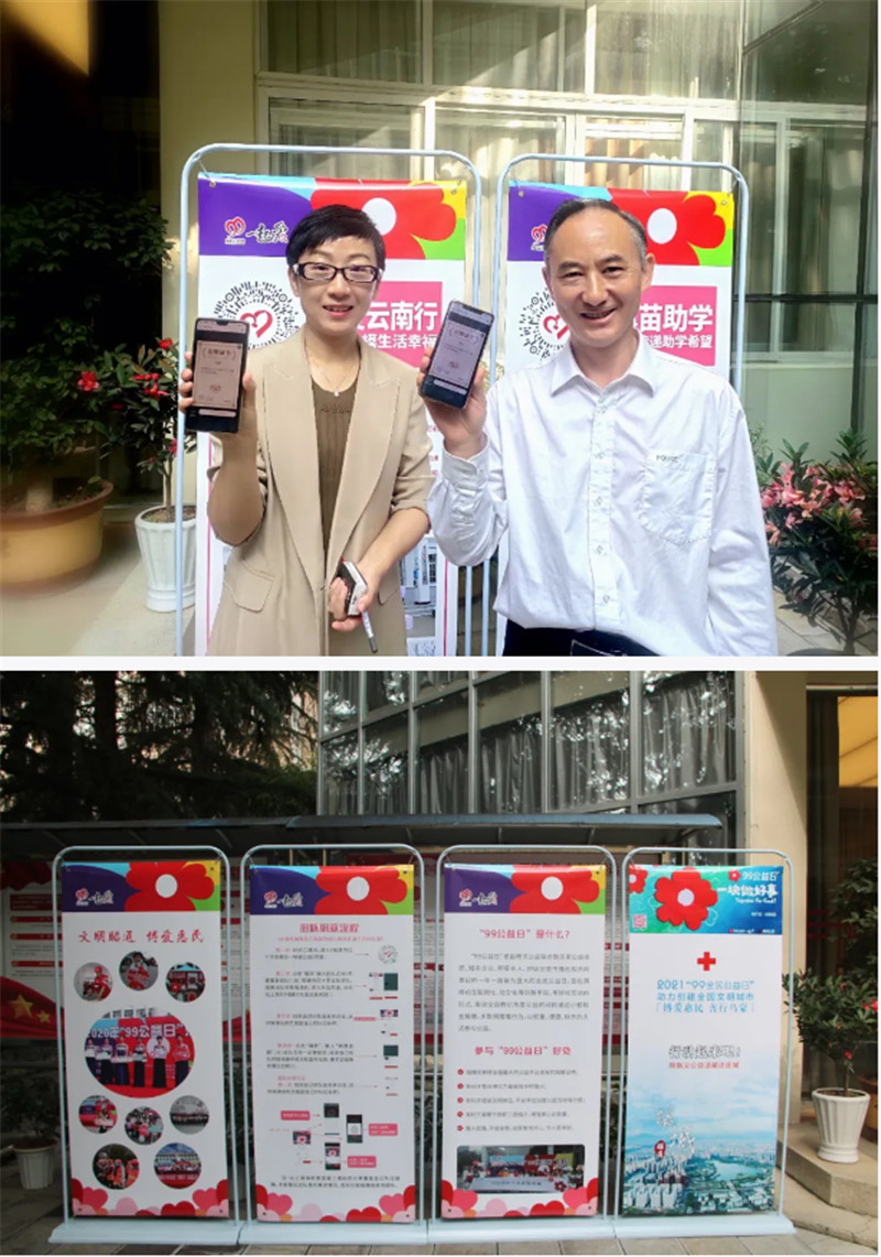 石邦云、吴静等领导现场扫码参与网络筹款。