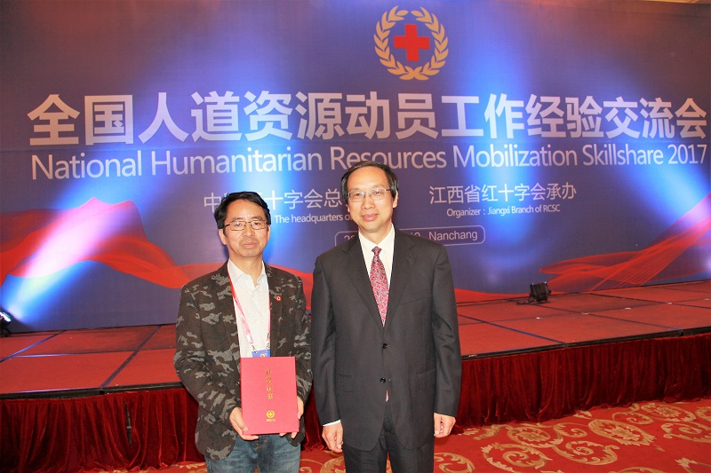 2017年10月18日至19日,全国人道资源动员工作经验交流会在江西省南昌市召开。会上,曲靖市红十字会策划实施的“浅秋之爱.情暖曲靖”活动被中国红十字会总会表彰为全国红十字系统人道资源动员工作“好项目好活动”。“图为中国红十字会总会副会长王汝鹏与曲靖市红十字会副会长侯文径合影。
