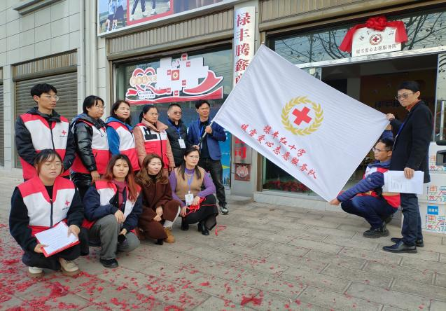 “我宣誓,我志愿成为一名中国红十字志愿者,自觉遵守中国的法律法规,坚持红十字运动七项基本原则,尽己所能,不计报酬,为帮助他人和服务社会而工作。”1月24日下午,禄丰红十字暖雪爱心志愿服务队队员面对队旗庄严宣誓。在志愿服务队揭牌仪式上,禄丰市红十字会负责人就红十字暖雪爱心志愿服务队下阶段的工作提出了要求。