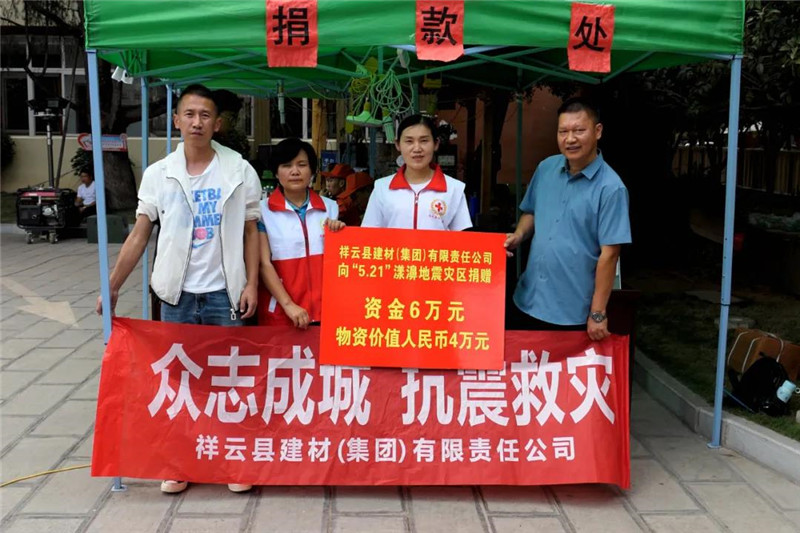 面对“5·21”漾濞地震,祥云县建材(集团)有限公司在抗震救灾工作中奉献爱心,传递温暖,主动承担社会责任,树立了良好的企业形象,营造人人为灾区献爱心、施善举、做贡献的良好氛围。