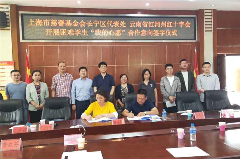 5月13日,上海市慈善基金会长宁区代表处和红河州红十字会开展困难学生“我的心愿”合作意向签字仪式,仪式在州红十字备灾中心举行。上海市慈善基金会长宁区代表处会长陈建兴、副会长张国蕊、毛国伟,州人民政府副秘书长马骥,州红十字会党组书记、常务副会长邓洪彬等同志出席签字仪式。