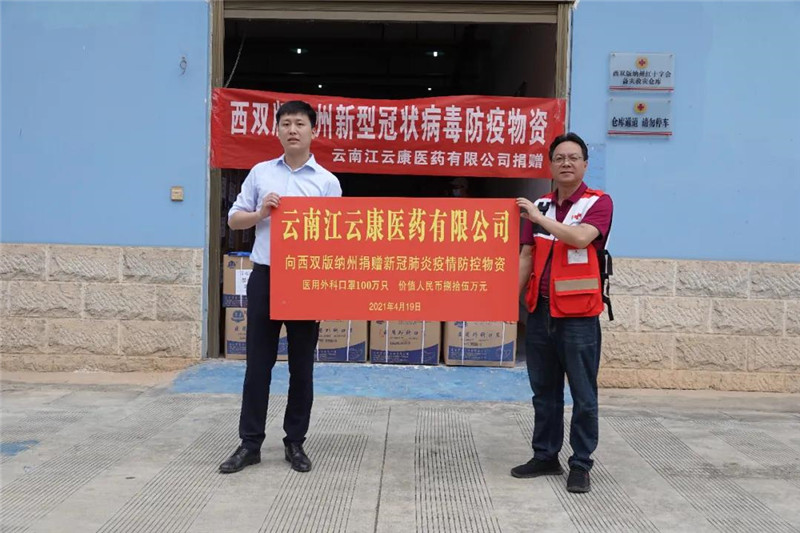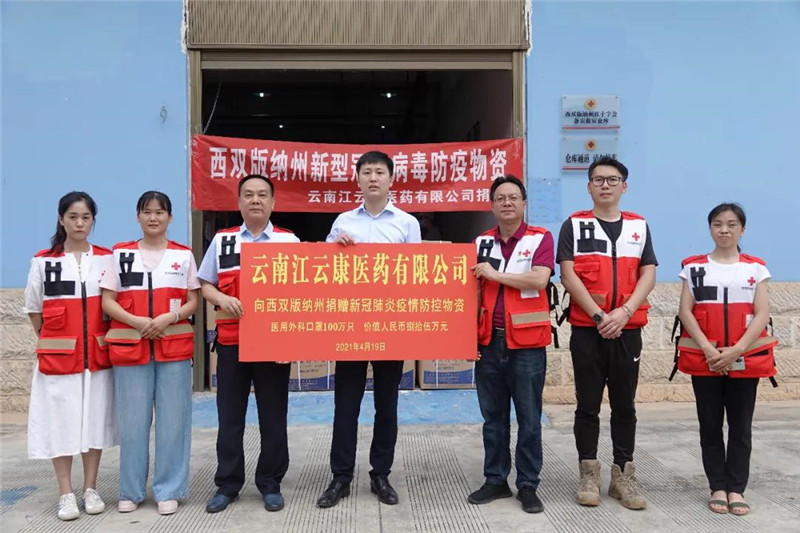 4月19日,云南江云康医药有限公司向通过西双版纳州红十字会捐赠价值85万元的医用外科口罩100万只,助力西双版纳州新冠肺炎疫情防控工作。