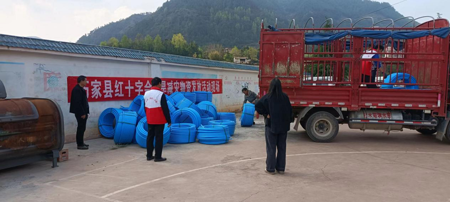 楚雄州元谋县红十字会发动志愿者开展抗旱应急送水志愿服务,为人畜饮水困难村庄中的“一老一小”人群送去饮用水。元谋县红十字会将云南省红十字会支持的抗旱救灾专项资金与该县凉山乡在建光伏提水项目整合,购买PE水管1.02万米,组织群众铺设到户水管网,让凉山乡5个村民小组194户群众喝上了干净水。