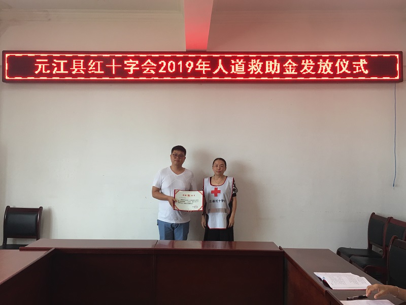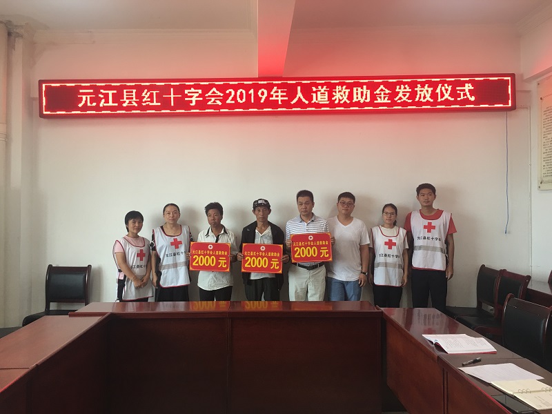 9月18日,元江县红十字会举行2019年人道救助金集中发放仪式,县红十字会全体干部职工、救助对象及家属和爱心企业参加活动。