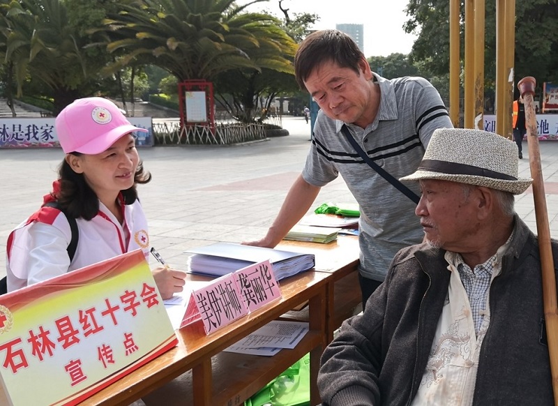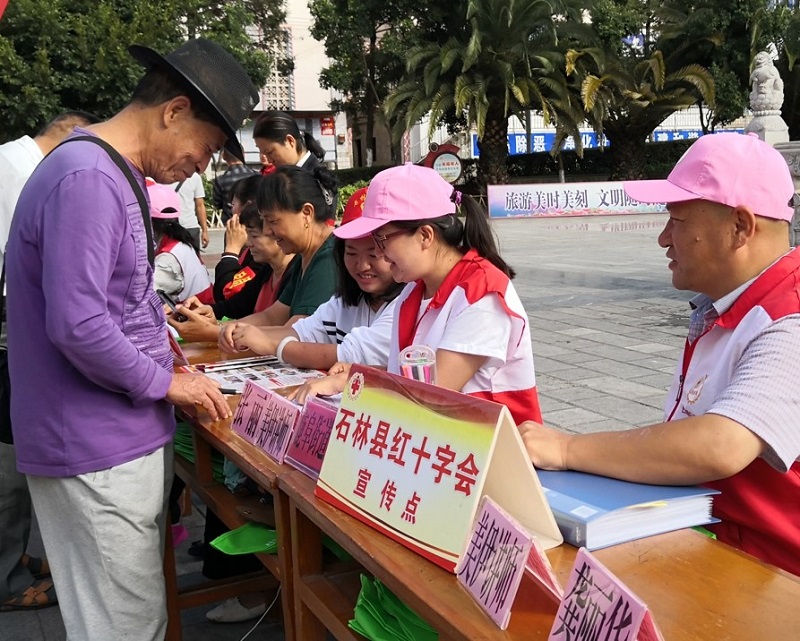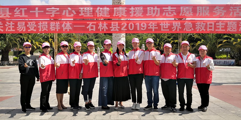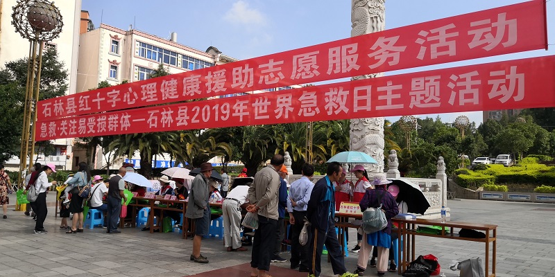 9月14日,石林县红会在县城中心广场开展主题为“急救·关注易受损群体”2019年世界急救日主题活动暨红十字心理健康援助志愿服务活动。石林红十字心理健康志愿服务队和来自鹿阜街道办社区、村小组的30余名志愿者参与宣传活动。