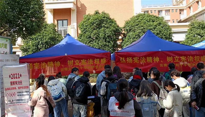 为弘扬宪法精神,促进宪法实施,加大普法力度,在校园内营造尊崇宪法、学习宪法、遵守宪法、维护宪法、运用宪法的良好氛围,云南大学红十字会学生分会积极响应云南省红十字会的号召,采用线上与线下相结合的方式,开展了宪法宣传活动。