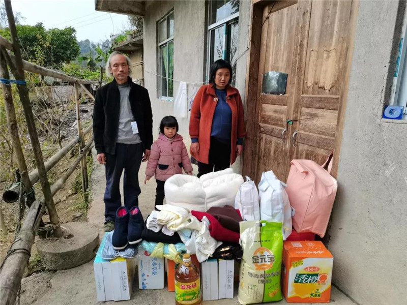 周银彬一家三口人,周银彬多年前因脑梗塞导致肢体二级残,劳动力严重下降,妻子李好燕患精神分裂症且怀孕快要生小孩,女儿周祥玉5岁多,两个眼睛圆圆的。虽然政府从各个方面给周大哥一家予以了最大的帮助,但因病、因残,相比一般人家,周银彬一家还是显得很困难。得知其困难情况后,李成秀夫妇就一直坚持为周银彬一家提供帮助,像今天这样送物资已不是第一次,而且除周家外,李成秀夫妇近年来还帮助了多户困难群众。