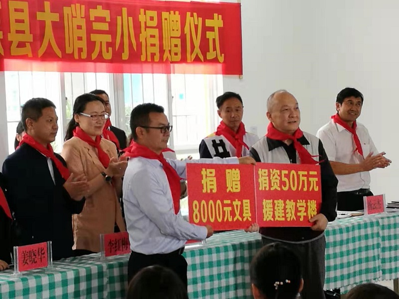 元谋县老城乡大哨完小幼儿园大楼,由中国非公立医疗机构协会国际合作交流工作委员会常务副主任兼秘书长程文灏个人捐赠50万元,同时当地政府配套资金31.23万元共同出资建成,幼儿园覆盖周边4个行政村9个自然村的学龄前适龄儿童,开了当地幼儿教育的先河。在考察中,程文灏先生还向老城乡大哨完小所有学生赠送了价值8000多元的书包、文具等学习用品。