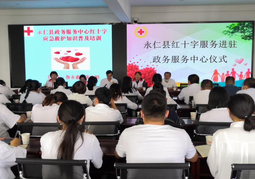 2021年9月24日,“永仁县政务服务中心红十字应急救护知识培训暨红十字服务进驻仪式”在政务服务中心如期举行,招募政务服务大厅工作人员成为红十字志愿者,对服务中心窗口工作人员开展了应急救护技能普及培训,切实将“人道、博爱、奉献”的红十字精神和“政务为民,政务爱民、政务暖民”的政务服务理念有机结合,尽可能的延伸红十字会服务群众的触角,最大限度地维护政务服务中心来往人群的生命安全。
